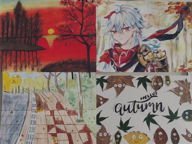 有些同学利用红日代表秋天,有的同学利用落叶二次创作,有的同学窗外窗内风景反差来反应他们眼里面的秋天。