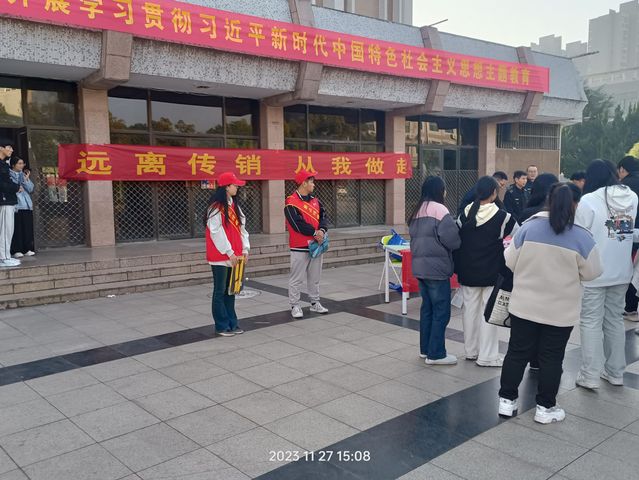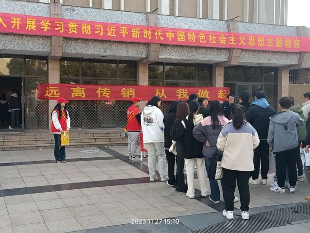 为切实做好打击和防范传销工作,进一步提高学生识别、防范、抵制传销的能力,创造安全有序的校园环境。11月27日,学院团委、铜官区市场监管局联合开展“拒绝传销进校园”宣传活动。