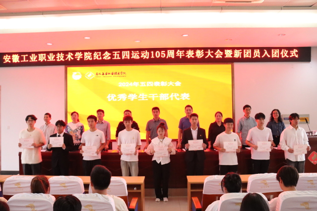 学生处负责人宣读《关于表彰2023-2024学年学院五四先进集体和个人的决定》,对在学院共青团工作中表现突出的先进集体和个人进行了表彰,出席会议的领导依次为获奖者代表颁发荣誉证书。四名学生代表作为受表彰集体和个人先后发言,分享了他们在前进路上的工作经历和感人故事,抒发青春心向党,建功新时代的豪情。