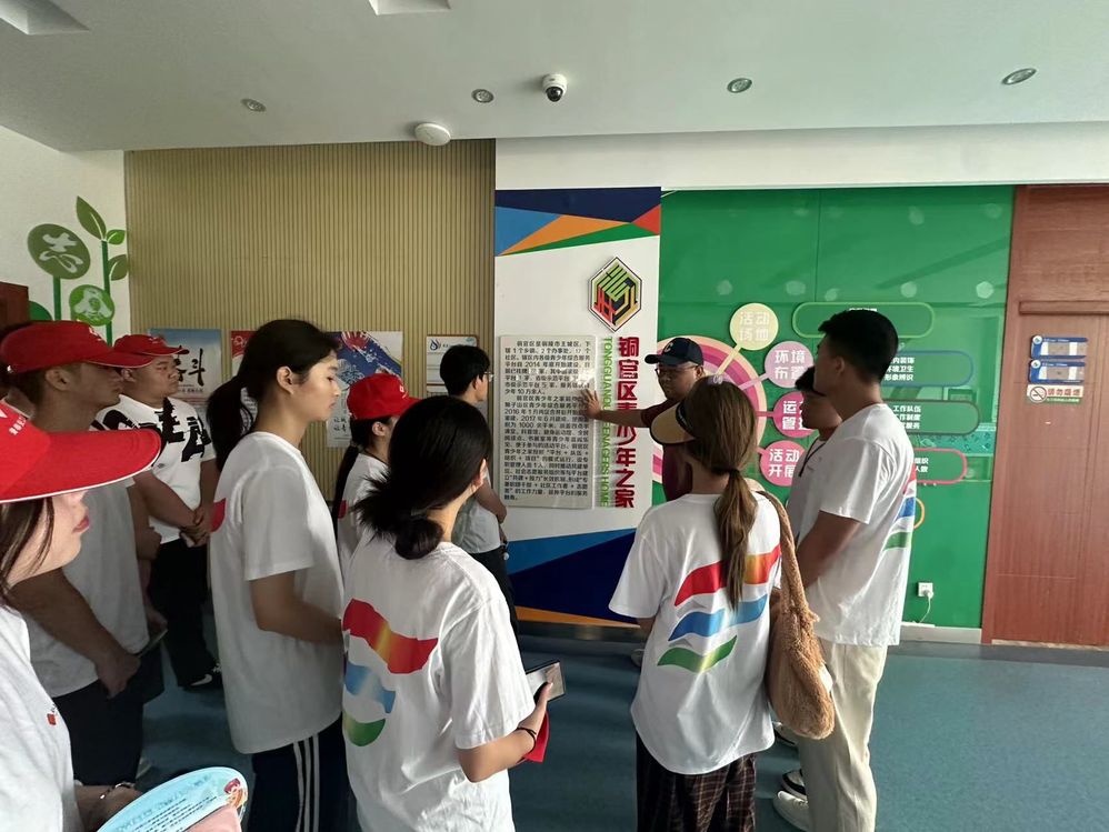 活动伊始,社区工作人员带同学们参观社区新时代文明实践所,了解了社区青年之家的基本功能与活动内容。天井湖青少年之家于2017年落地建成,是一个国家级示范性青少年综合服务平台,包括全民阅读点、书画室、健身运动馆等设施项目齐全。