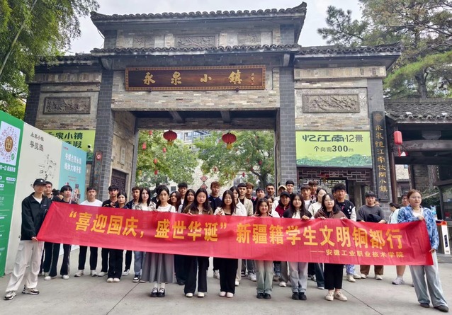 为丰富省外大学生假期生活,了解城市文化底蕴及发展历程,增长见识,拓展视野,增强学生对铜陵历史和文化的了解,感受铜陵人文环境。10月13日下午,学院“连心锁”工作室组织开展2024年国庆期间新疆籍学生“文明铜都行”活动。本次活动共有30余名新疆籍各民族学生参加,学院派驻老师何伟领队,学生处、保卫处、二级院系辅导员老师共同负责本次活动的安全开展。