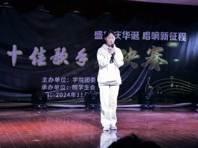 金豆逗同学的《光年之外》荣获第一,他的音色独特而富有魅力,嗓音一开口就抓住了听众的耳朵。在演唱不同风格的歌曲时,能够很好地发挥出音色的优势,音色与歌曲的情感氛围相得益彰,让人沉浸其中。其次汤恩泽给同学们带来的《怎么说我不爱你》荣获此次比赛的第二名。他的歌曲演唱节奏感强烈且准确,能够与音乐的节拍完美融合。在快节奏的歌曲中,表现得活力四射,让人不禁跟着节奏一起摇摆;而在慢节奏的歌曲里,又能沉稳地把握节奏的变化,营造出深情动人的氛围。第三名获得者是张聪慧给同学们带来的歌曲《说爱你》她在演唱中注入了丰富的情感,真正做到了用歌声讲故事。每一句歌词都饱含深情,让听众能够深刻地感受到歌曲所传达的情感。她的演唱让人感同身受,仿佛身临其境。