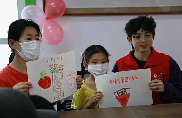 随后的画画和手工制作环节将活动氛围推向了高潮。青年志愿者为大家分发了画笔、彩纸等材料,耐心地指导孩子们创作。孩子们充分发挥自己的想象力,用稚嫩的小手绘制出一幅幅充满爱意的画作,有的画上了和妈妈手牵手在花园里散步,有的描绘了一家人幸福地生活在一起;还有的孩子用彩纸精心制作了贺卡、花朵等手工艺品,在上面写下了对妈妈最真挚的祝福。妈妈们看着孩子用心完成的作品,紧紧地将其抱在怀中,脸上满是欣慰与感动。