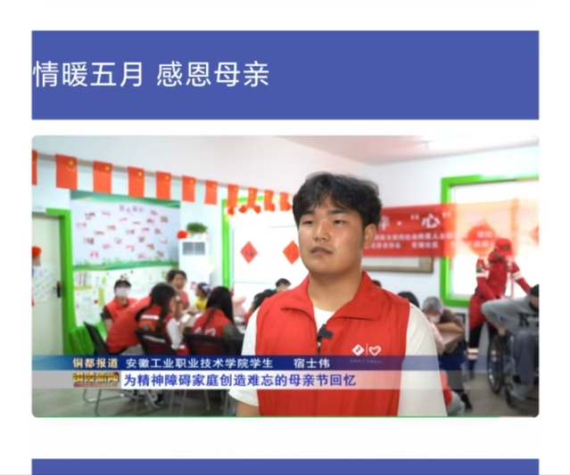 在母亲节这个充满爱与感恩的日子里,为了让特殊家庭感受到社会的关怀与温暖,5月11日,学院团委组织青年志愿者走进铜官区蕴藏公益服务中心官塘社区站点,开展“温暖相伴・‘心’意母亲节”活动,8名青年志愿者协会成员与特殊家庭的妈妈和孩子们共度了一段温馨难忘的时光。