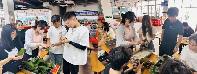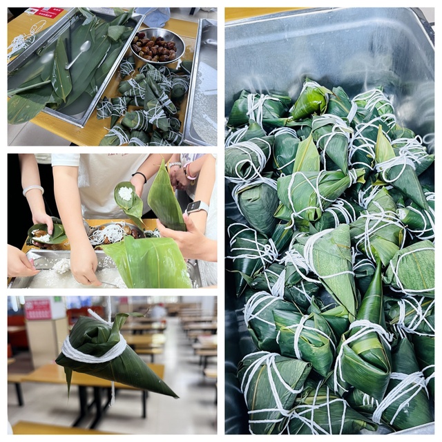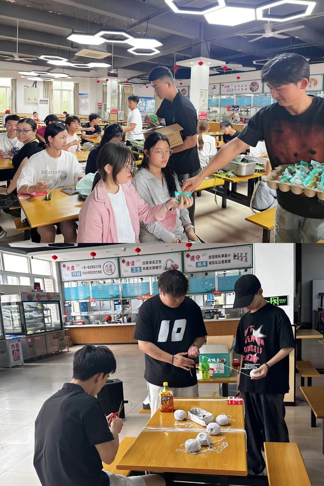 活动开始,学院新疆派驻教师、团委副书记何伟致辞,向同学们送上节日问候,强调民族团结与文化传承意义。何老师通过故事讲述,详细介绍端午节起源、赛龙舟、挂艾草等习俗及各地粽子特色。随后,烹饪专业的同学现场示范包粽技巧,从粽叶处理到糯米调味、粽子包扎,同学们分组实操,在指导老师与志愿者协助下,亲手包制粽子,现场氛围热烈。