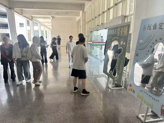 4月25日,“破局压力 拥抱自我”心理健康讲座拉开活动序幕。主讲人俞瑶老师以幽默互动带领近80名学生解析Z世代独特压力源,通过“压力等级评估”“进化心理学实验”等环节,帮助学生理解压力的生理机制,并传授“478呼吸法”、“正念行走”等实用技巧。讲座现场,学生们积极参与“不完美接纳宣言”互动,在轻松氛围中重塑对压力与自我的认知。 同期开展的“自我肯定夸夸镜”活动则以“润物细无声”的方式浸润心灵。校园角落的镜面四周布满“我值得被爱”、“每一步都有意义”等暖心话语,搭配手绘图案,引导学生在照镜瞬间完成“外在观察”与“内在认同”的联结。同学们纷纷反馈,每天路过镜子时读一句肯定语,逐渐养成了“自我对话”的积极习惯,焦虑情绪得到明显缓解。