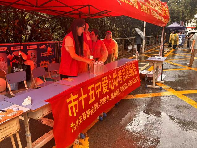 一年一度的高考如期而至,铜陵市1.1万学子怀揣梦想,奔赴人生重要考场,书写青春答卷。为了给考生及家长提供最优质的助考服务,团市委抽调金年会学生参加2025年高考志愿服务,学院爱心社高考志愿者们再次活跃在高考考点外,为考试顺利进行贡献着自己的力量。他们活跃在考场周边,或化身治安巡逻员、交通疏导员,维护考点周边秩序,或为考生及家长免费发放矿泉水、防暑降温药品、中药香囊、应急文具包、凉扇等。他们细心、暖心、温馨的助考服务,受到了社会的认可、考生们的欢迎和家长们的赞誉。