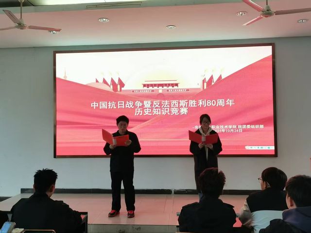 为深情回望并铭记抗日战争暨世界反法西斯战争胜利80周年的辉煌篇章,传承与弘扬不朽的抗战精神,学院团委于10月24日在阶梯教室101,成功举办了一场别开生面的历史知识竞赛活动。