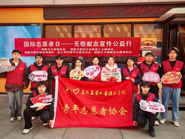 11月30日国际志愿者日来临之际,学院团委积极响应公益号召,组织10余名志愿者参与铜陵市献血协会在万达广场献血屋举办的“国际志愿者日——无偿献血公益行”宣传活动。