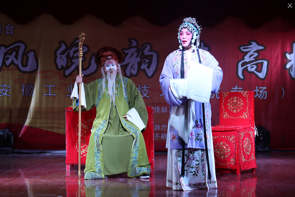 演出中,演员们通过铿锵激昂的“快板”与委婉深沉的“寒板”,配合宿州方言的独特韵味,将小包公的机智果敢、大嫂的慈爱坚韧刻画得入木三分。尤其是“巧断家事”一折,包拯以“秤杆断案”的民间智慧化解矛盾,引得现场观众连连喝彩。该剧曾多次亮相国家级艺术舞台,此次在高校演绎更显青春活力,不少学生表示:“原来传统戏曲也能这么接地气!”