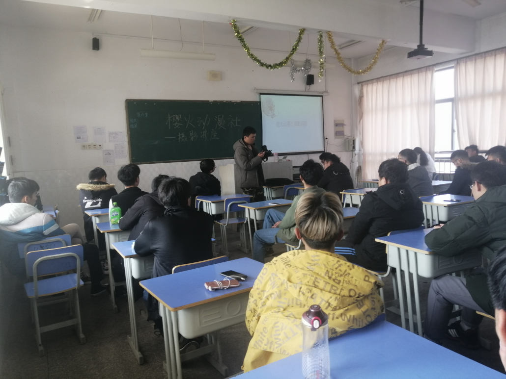 2019年12月13日下午1点,由樱火动漫社主办的摄影讲座在安工学院西湖校区教室506举办。此次讲座由动漫班王齐和潘睿担任主讲人。