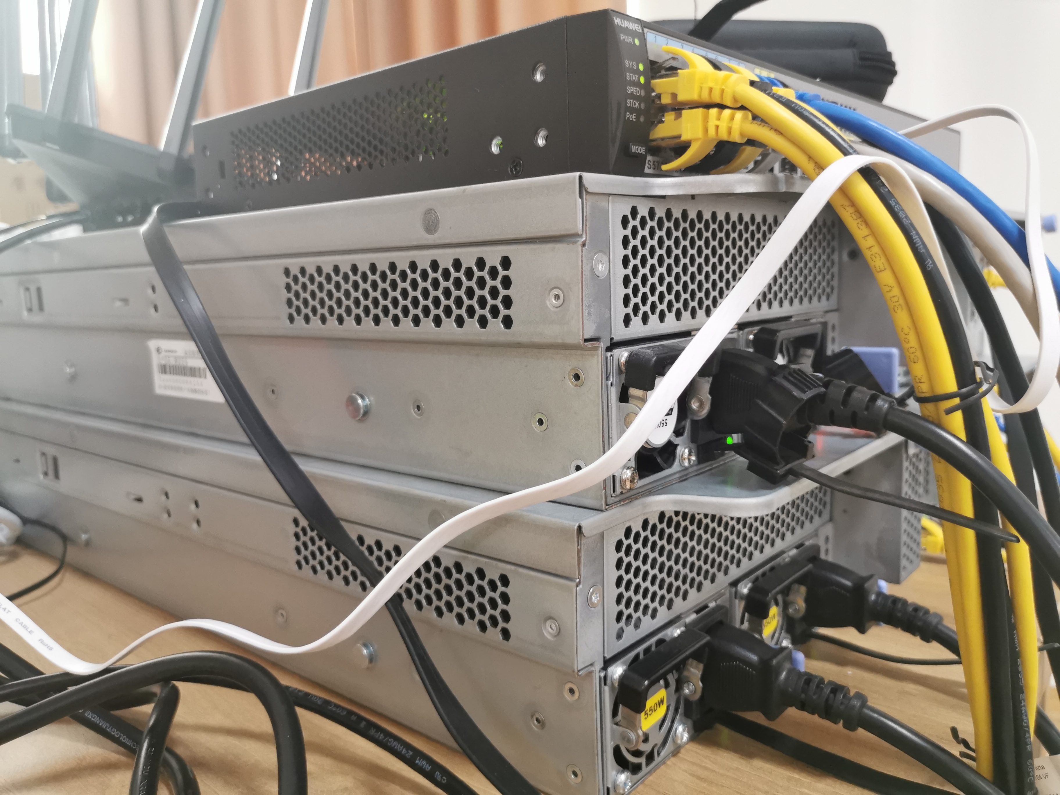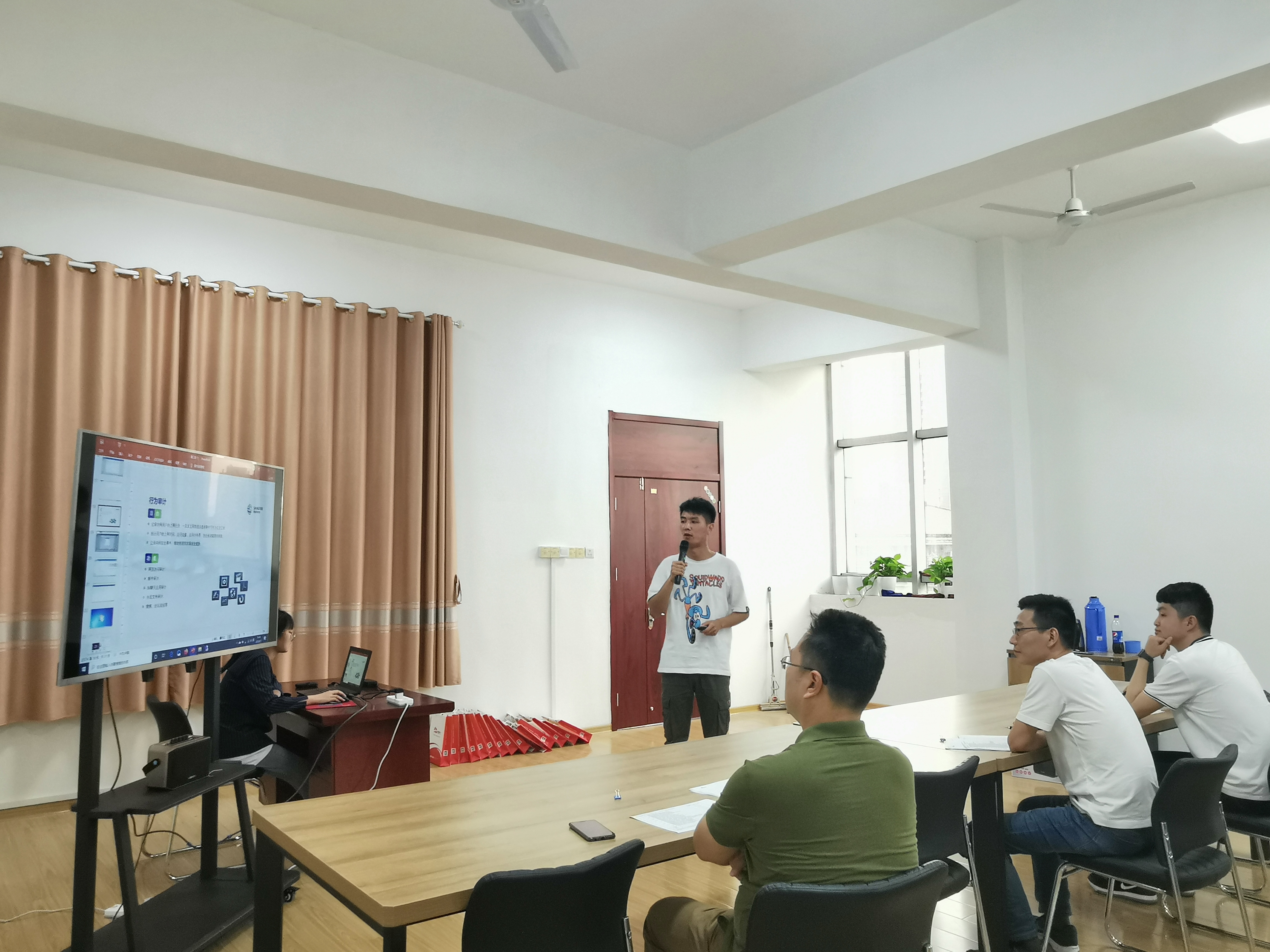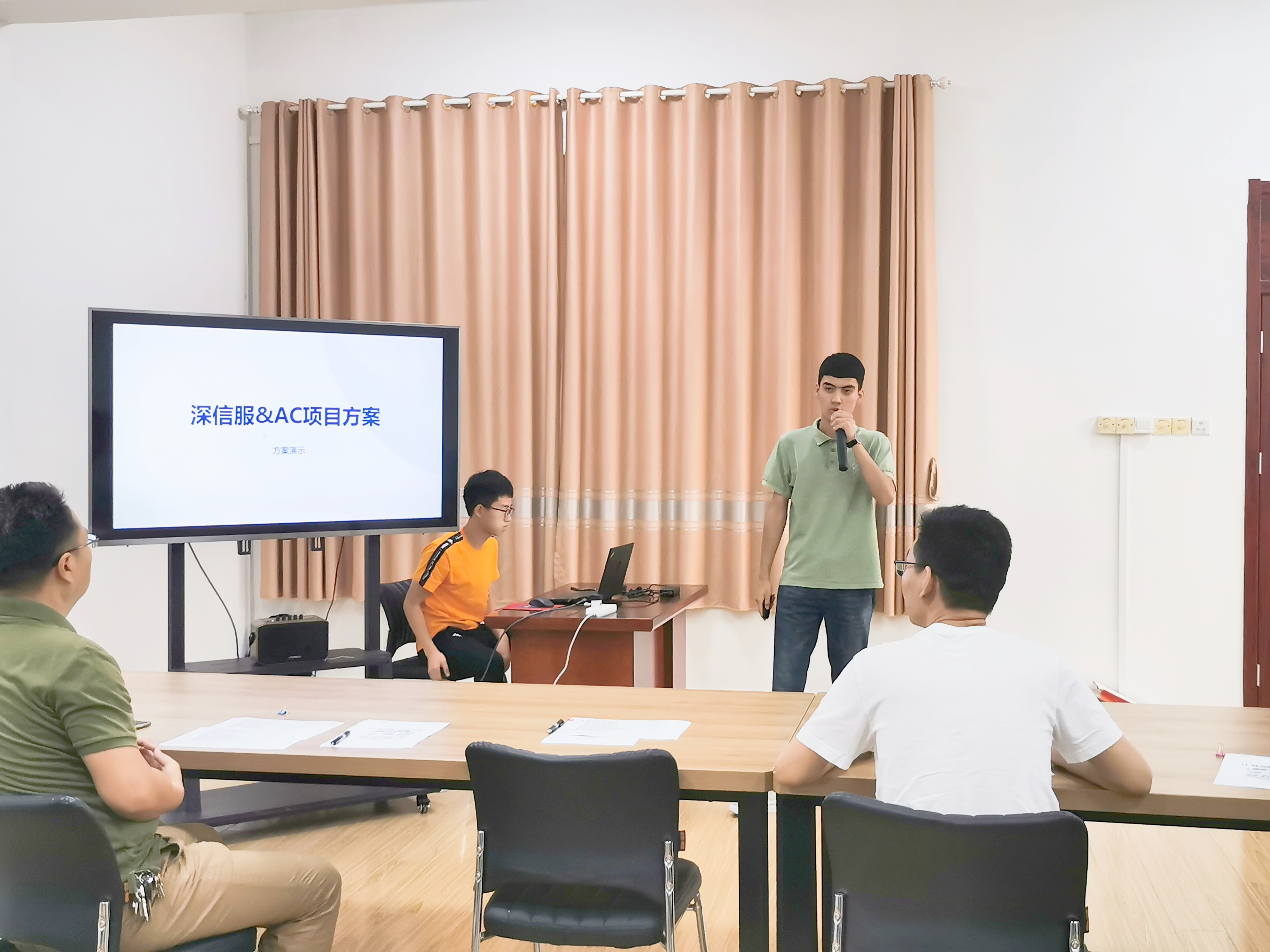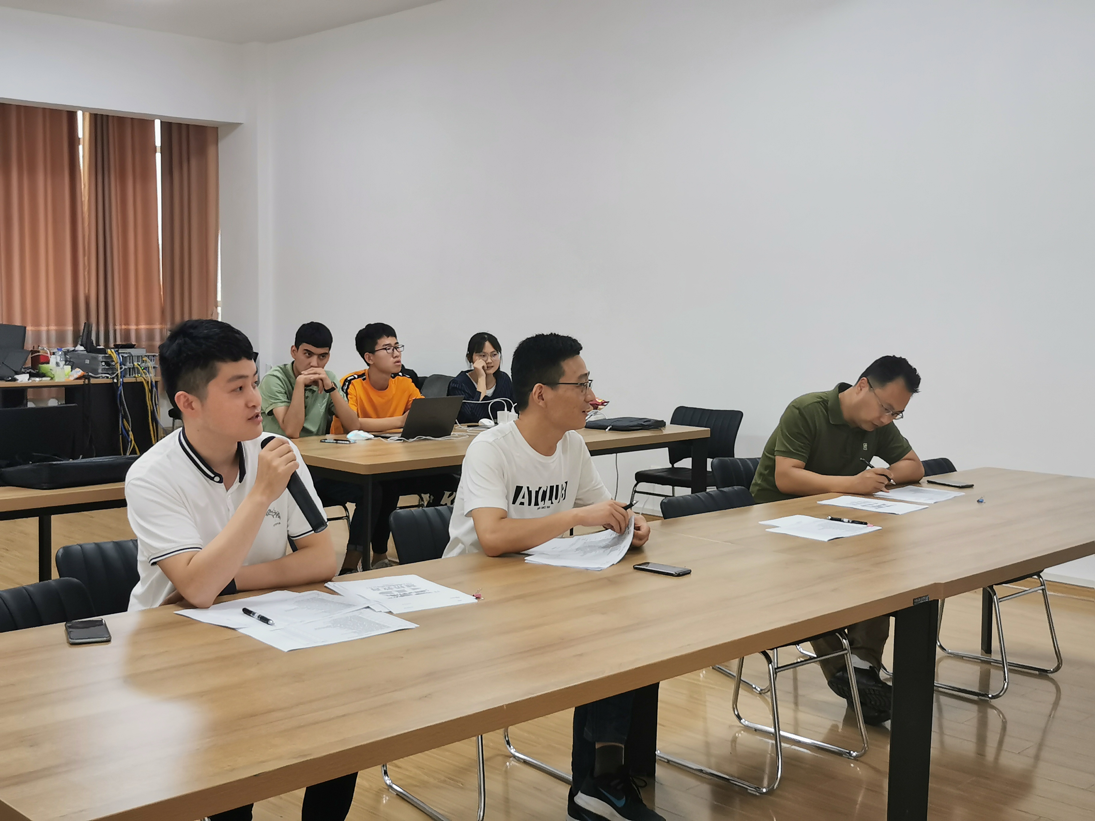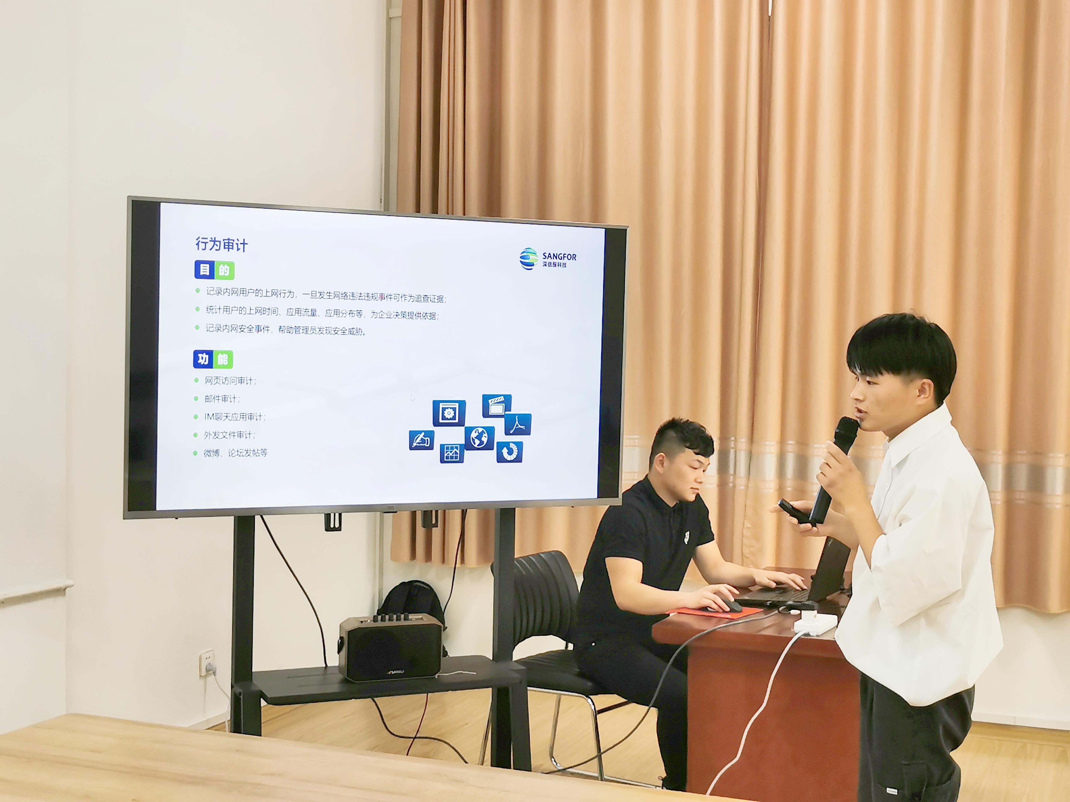 第一天上午,介绍活动内容、项目背景与项目需求、针对项目规划方案、设计项目实施流程;学生参与超融合、上网行为管理等网络设备的架设。