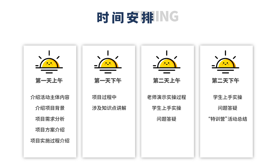 第二天上午,教师演示项目实施流程,学生动手完成项目,教师答疑、解惑。