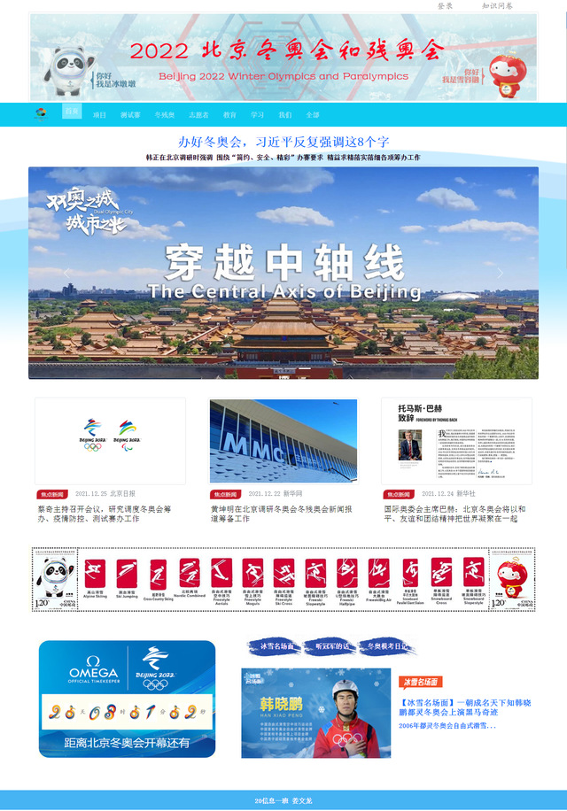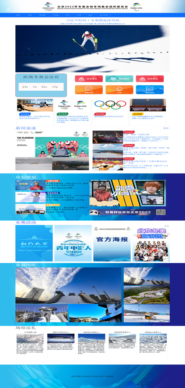 信息工程系2021年秋季学期静态网页设计大赛于2021年12月31日圆满结束。本次大赛,以“一起向未来(“Together for a Shared Future”)--北京冬奥运”和“建党100周年”为主题,通过北京冬奥会让广大青年学生爱上冰雪运动、领悟奥林匹克精神、切身感受祖国的强大、中华民族奋斗不息的伟大精神、中国人民开拓前行的伟大精神,增强我们的道路自信、理论自信、制度自信与文化自信。同时,也通过这个竞赛检验相关专业课程的学习效果,提高网页设计的实战动手能力,包括图形图像处理能力、网页版式与色彩搭配能力、页面布局能力、WEB前台的JS编程能力等;使同学们能将所学专业技能与社会需求更紧密结合,增强同学们的就业竞争能力。