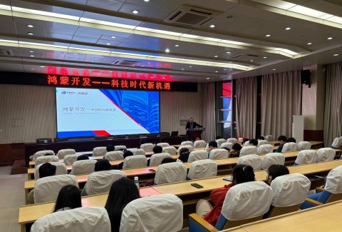 为拓展学生的视野,了解鸿蒙技术最新应用前景,做好学习规划与职业规划,信息工程系特邀请江苏传智播客教育科技股份有限公司高级工程师郑智为计算机应用技术、软件技术、大数据技术三个专业的22级同学于2024年4月11日在阶梯301教室举办了一场名为“鸿蒙开发——科技时代新机遇”的专业讲座。