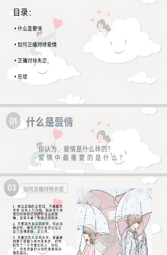 此次活动,同学们通过网上查阅资料,阅读相关书籍,了解关于正确恋爱观的相关知识,并将自己了解的关于恋爱观知识以PPT的形式呈现出来。在制作期间,同学们选择了精美的封面,运用各种动画展示内容,有的添加了背景音乐和视频讲解,将知识生动形象地展现出来,让阅读的人一目了然。