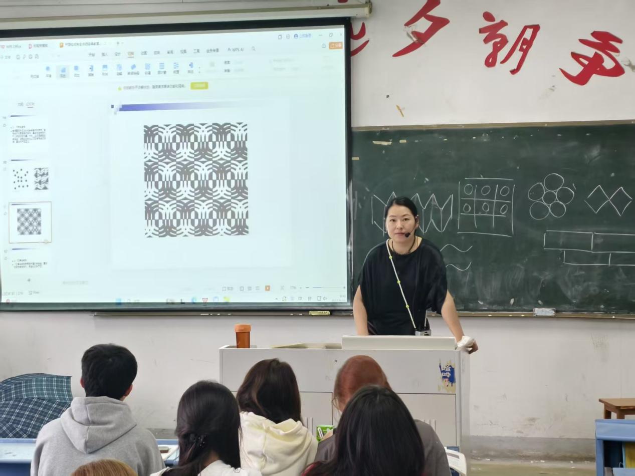 杨静老师为大家展示的是《设计构成》。她以市面上各类海报作例子,剖析了设计里面,点的类型与重要性。她的讲解通俗易懂,将理论与实践巧妙融合,让在场的各位老师领悟到设计的奇妙魅力。