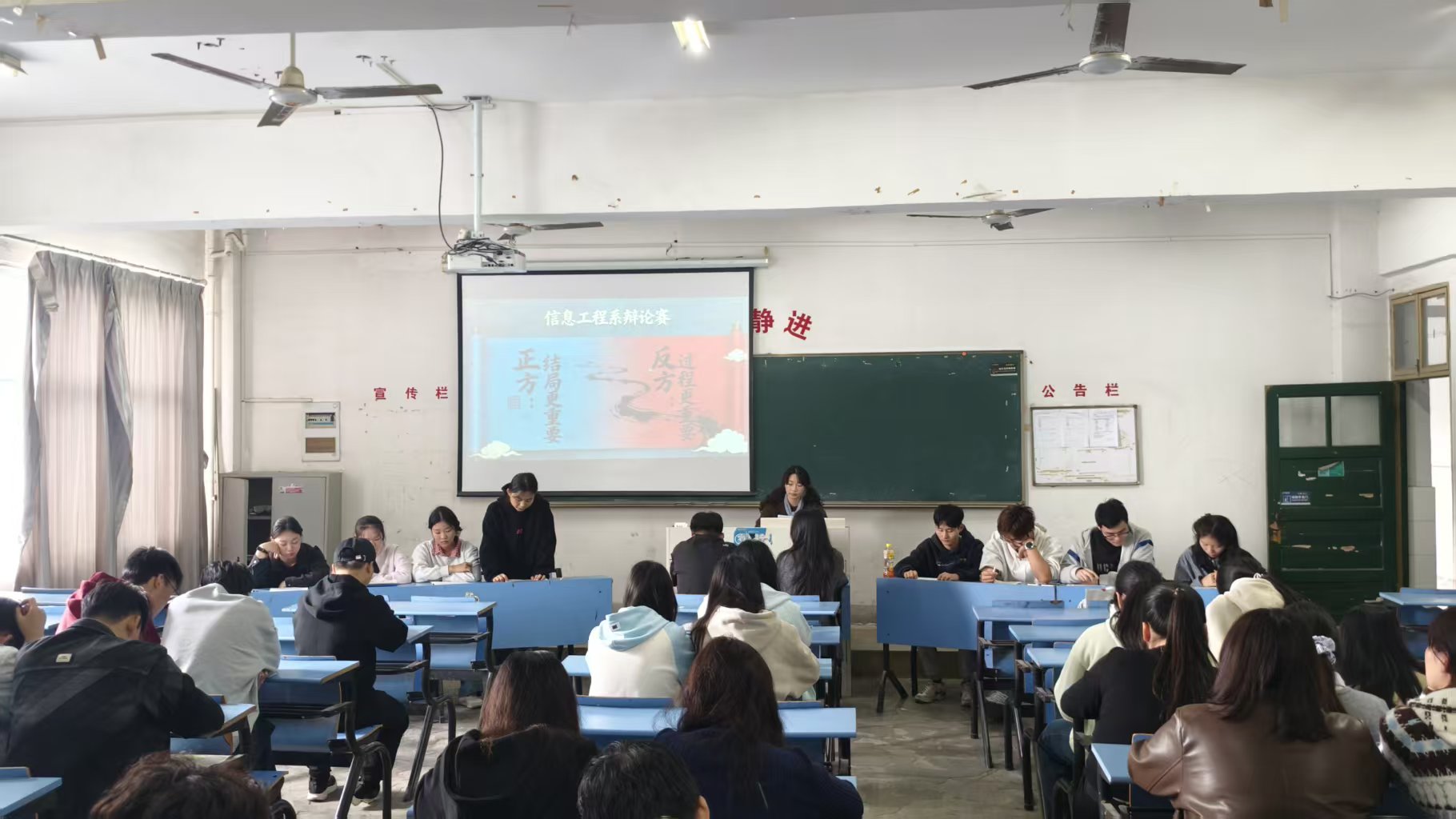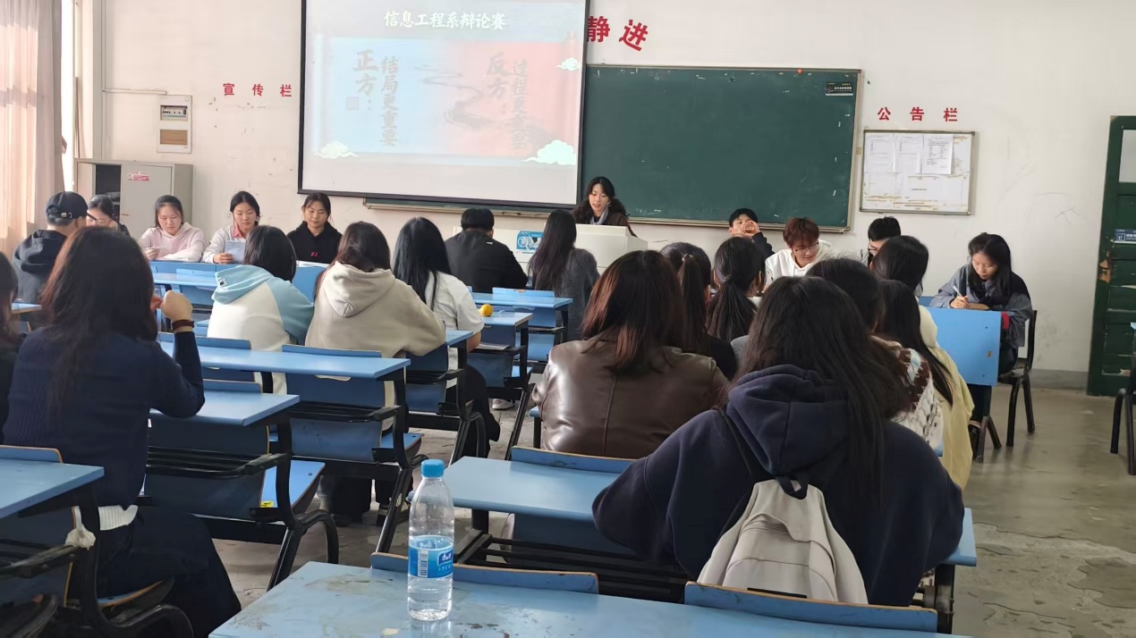 为丰富学生课余文化生活,培养逻辑思维与语言表达能力,11月12日,信息工程系在图文楼509教室举办了辩论赛。