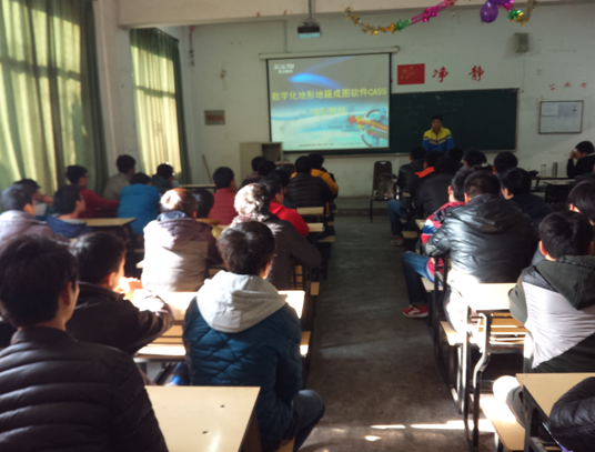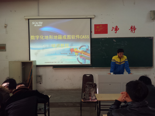 2014年12月29日,资源开发系特邀南方测绘仪器公司的黄相文工程师为工程测量专业师生80余人做关于“南方CASS成图软件”的讲座。