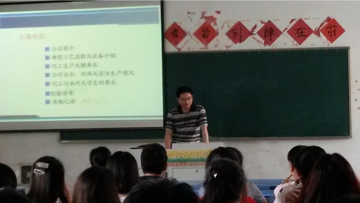 2015年6月5日14:30在学院教学楼302教室,六国化工股份公司教授级高工沈浩总工程师给同学们带来了一次精彩的讲座,资源开发系冶化教研室教师和13化工、14冶化学生听取了此次讲座。