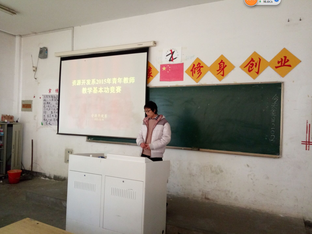 进一步加强我系师资队伍建设,提高青年教师教学水平,引导青年教师爱岗敬业、刻苦钻研业务、注重教学基本功训练。近日我系在教学楼101教室开展青年教师基本功竞赛。