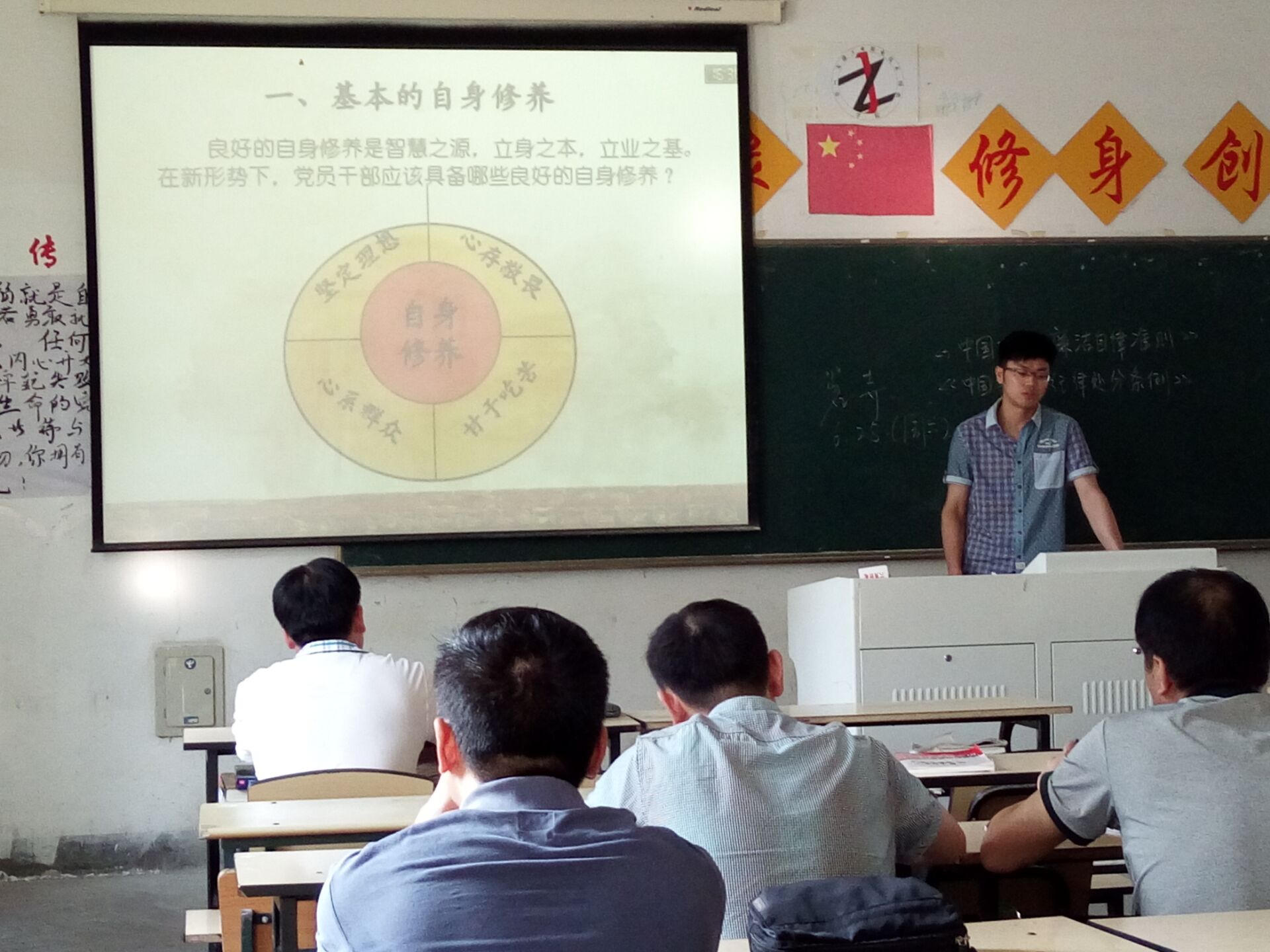 6月16日下午,资源开发系党支部开展普通党员讲微党课:彭林老师微党课题为《党员的自身修养》,从党员的基本修养和新时期对党员自身修养的要求两个方面进行讲述;刘琴老师微党课题目为《两学一做 从我做起》,讲述如何解决的信念、规矩、奉献等问题,争做讲信念、讲规矩、讲奉献、有作为的合格党员;杨书怀老师微党课,讲述学习习近平总书记视察安徽时重要讲话精神的认识和体会,以及在实际工作中如何践行……台上讲课老师神采飞扬,台下听课党员聚精会神。