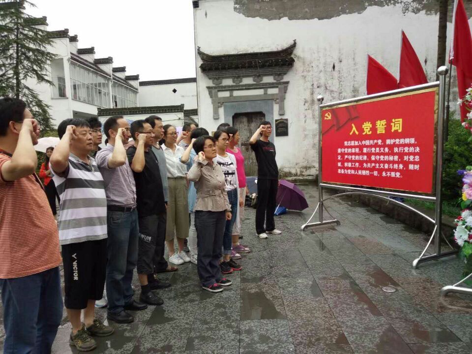 在庆祝建党95周年之际,根据“两学一做”学习教育实施方案的安排,6月25日,资源开发系党支部组织全体党员赴黄山岩寺新四军军部旧址接受一次革命传统教育,并举办了一场主题为“重温入党誓词,做合格党员”宣誓活动。
