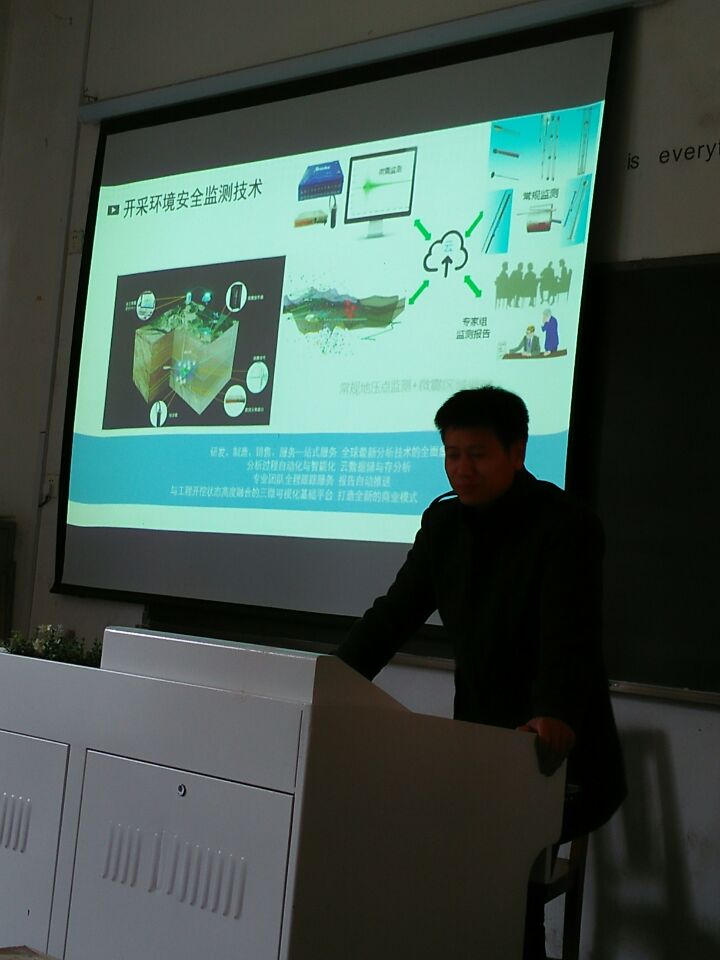 讲座伊始,汪工通过图文结合的方式向同学们介绍了我国矿产资源开发的现状及存在的问题,从而引出采矿技术向数字化进军的必要性和紧迫性。汪工指出,数字化矿山是地理、资源、生态环境等复杂系统的数字化、网络化、虚拟仿真,具有优化决策支持和可视化表现等强大功能。汪工还介绍了数字化矿山技术在我国矿山开采面临的问题与解决途径 、生产技术与方法创新、 生产与安全过程控制等方面的应用,使同学们对数字化采矿有了更深入的了解。