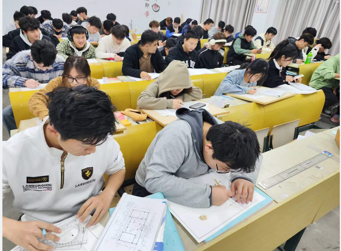 竞赛内容为手工绘制建筑平面图,比赛中同学们热情高涨,积极参与,充分展示了识图能力与手工制图技能。