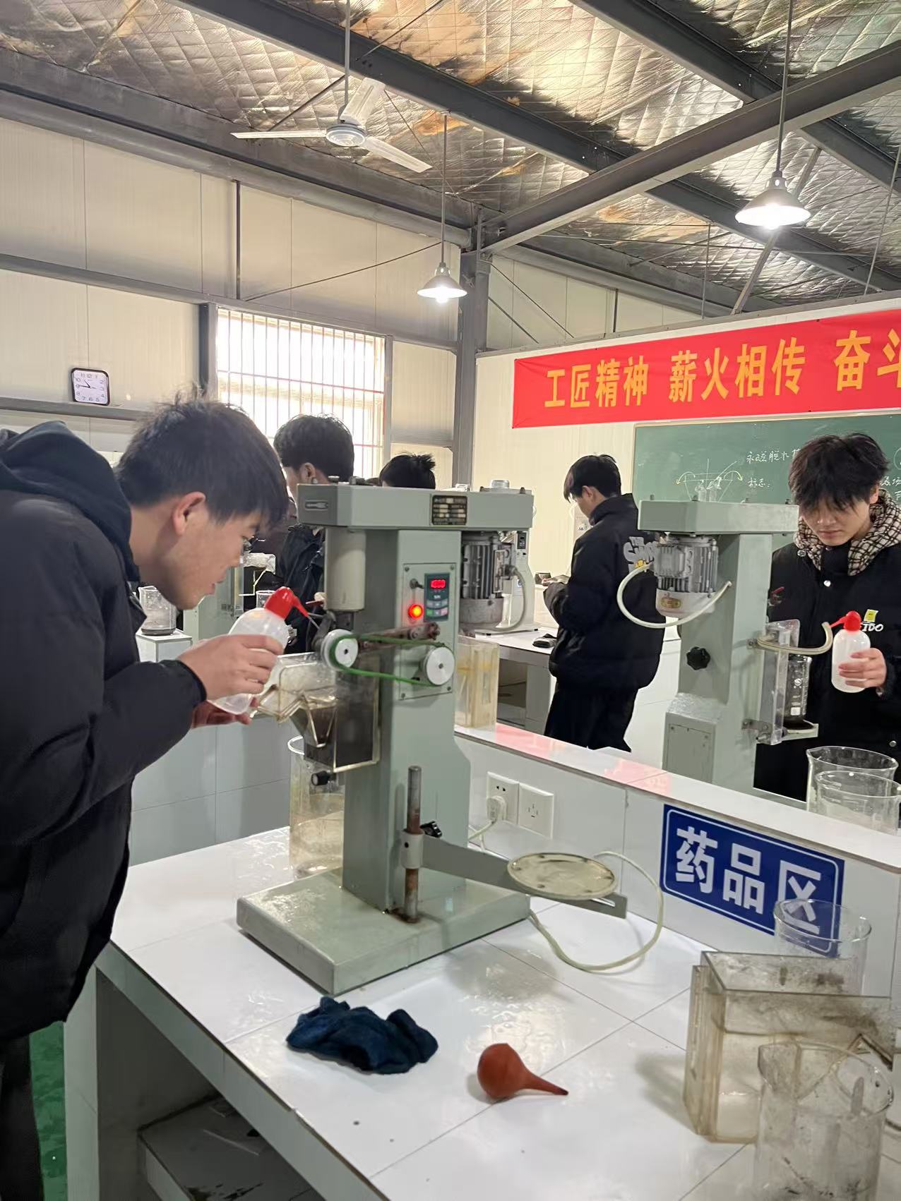 为营造良好的学习氛围,加强同学们对《浮游选矿》课程的理解和运用,提高分析和解决问题的能力,强化同学们的动手能力。2025年1月3日上午,资源开发系选矿实训中心举行了选矿技能竞赛,本次比赛为了锻炼同学们对矿物浮选过程操作的熟悉程度,并培养同学们相互协助的团队精神。