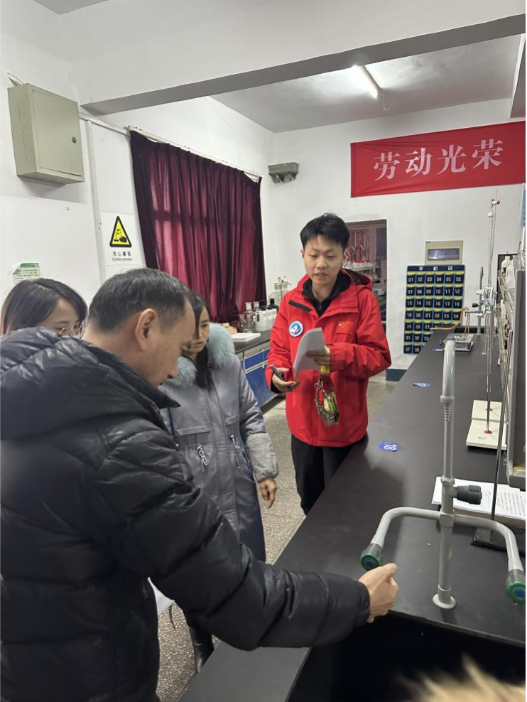 为贯彻落实教育部、省教育厅有关文件精神,确保实验室安全稳定运行,保障师生人身安全及校园稳定,按照学院实验实训室安全管理工作的要求,资源开发系积极开展了24年秋季期末实训室安全卫生检查工作。2025年1月9日下午,资源开发系负责人、分管教学与实训管理负责人及系部各实验室专(兼)职管理员对基础化学实训室、选矿实训中心、测绘实训室、建筑模型综合实训室等实验实训室的安全工作和卫生状况进行了全面深入检查,积极排查隐患。