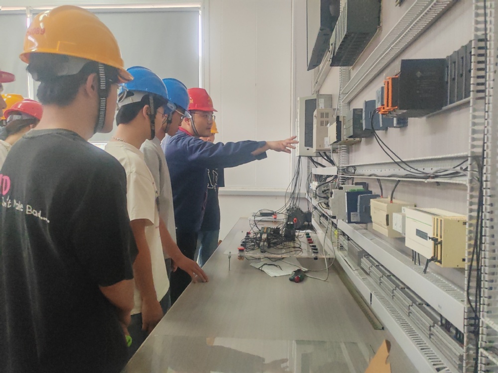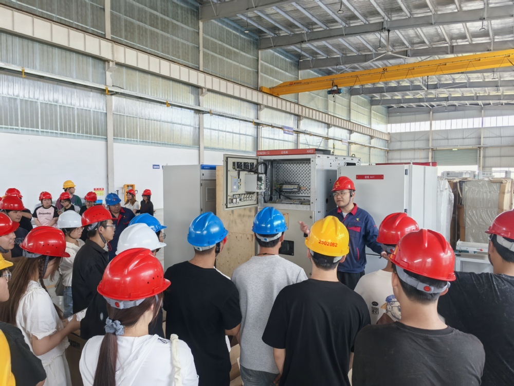 在电控设备厂中,高级管理人员向学生们展示了高低压电控设备的线路连接、组装流程,并详细讲解了自动化设备出厂前的试验流程及其原理,从而使学生们对电控设备有了更为直观的理解。