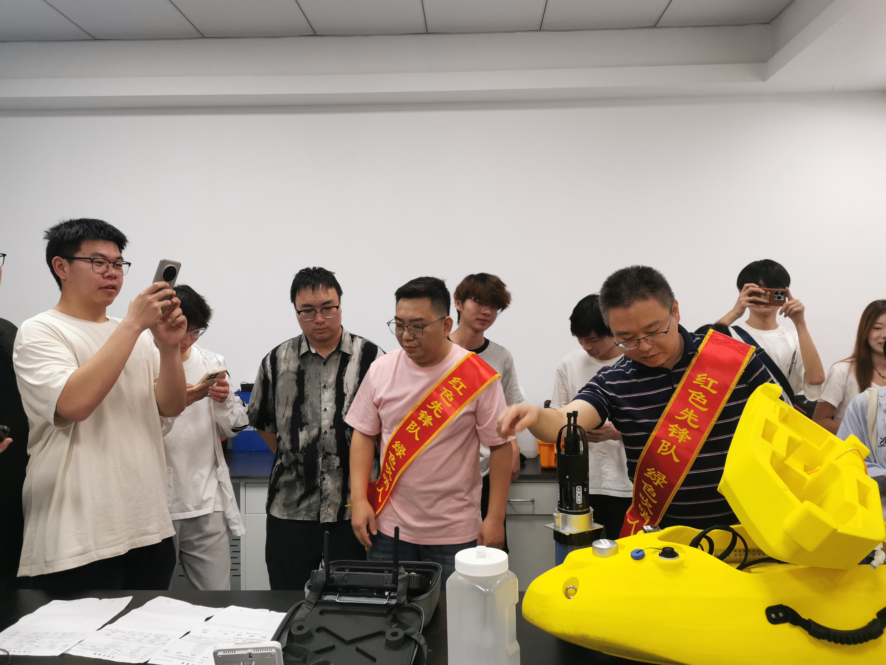应急监测设备参观:在中心负责人带领下,学生前往一楼设备间,由中心副主任陈曜负责讲解应急监测车和傅里叶红外光谱分析仪的基本功能和操作流程。