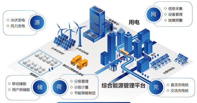 该系统采用应用层、网络层、设备层三层架构,将新一代信息技术与能源全链条深度融合,面向新能源发电、负荷管控、综合管理、新型储能及电力物联网等业务领域,提供完整解决方案,实现源、网、荷、储全要素能源流与信息流“全环节、全贯通、全覆盖、全生态、全场景”信息互联及服务管理,降低企业碳排放,打造低碳、零碳示范项目。