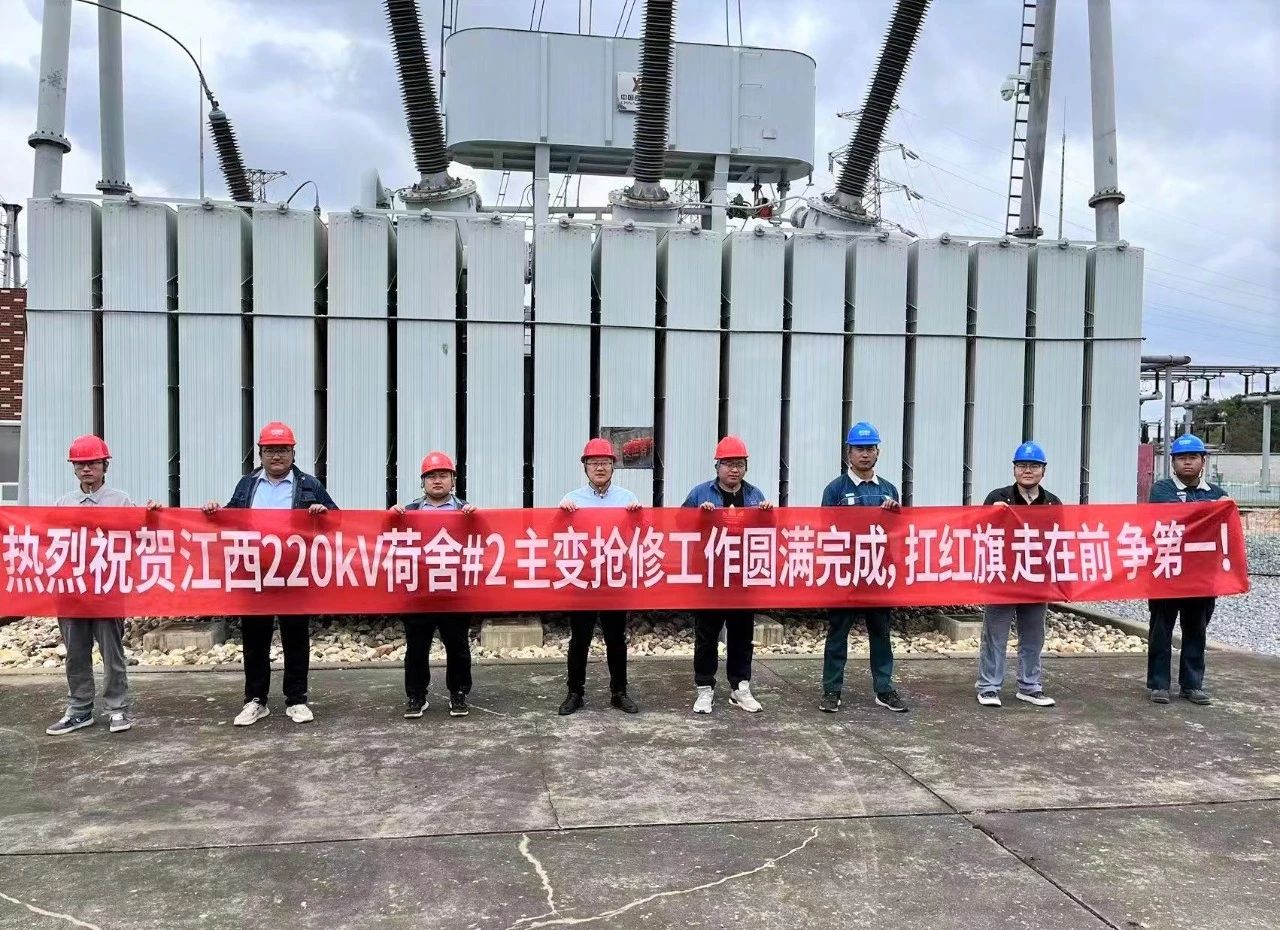 山东电工电气该项目工作组成员和抢修人员坚持扛红旗、走在前、争第一,中秋国庆假期坚守现场,保证了宜春荷舍220千伏变电站2号主变压器的顺利投运。