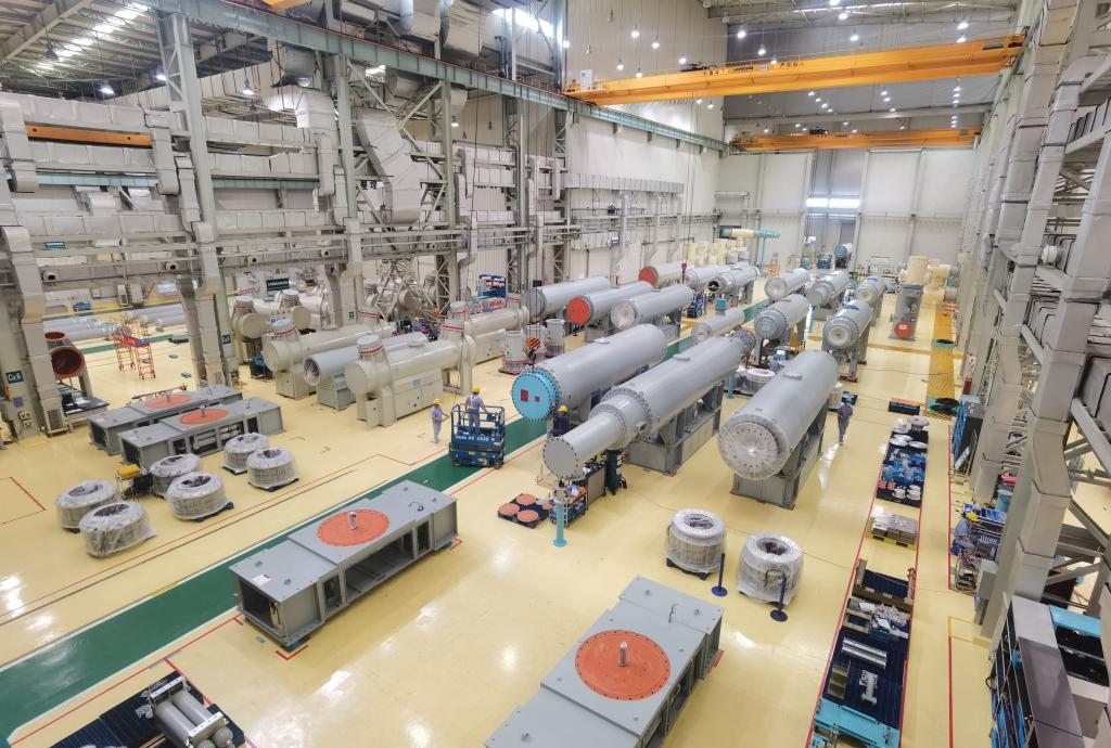 2023年10月24日,在位于内蒙古锡林浩特市张北-胜利特高压交流工程胜利1000千伏变电站扩建工程现场,经过两个多月的紧张安装,平高集团为该工程供货的1100千伏GIS设备第一阶段安装完毕,并顺利通过现场耐压试验,为全站按期投运打下坚实基础。