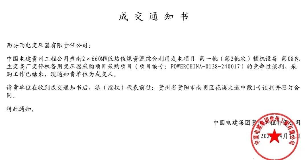 近日,中国西电所属西电西变成功中标盘南2×660兆瓦低热值煤资源综合利用发电项目输变电设备,其中2台SFP-780000/500主变压器、2台SFZ-80000/20高压厂用变压器和1台SZ-20000/110停机备用变压器。这是2024年西电西变中标单个金额最大的火电项目。