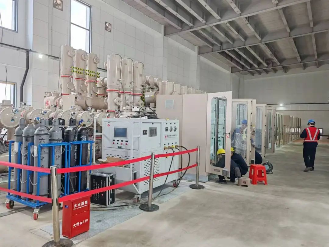 西开有限高度重视,各部门协同联动。在设计阶段,产品线针对混气工程的特殊性,编制了混气GIS工程设计规范、混气装配工艺规范、混气作业指导书等技术文件,并与设计院及用户积极沟通工程提图设计,确保方案落实。同时,产品线强化质量管理意识,确保产品在设计与装配环节均符合混气技术规范并圆满完成出厂测试。在安装阶段,现场人员积极筹备,克服环境因素,发挥扎实技能和丰富经验多作业面开工,认真执行安装、调试工艺标准,高质高效地完成设备安装。