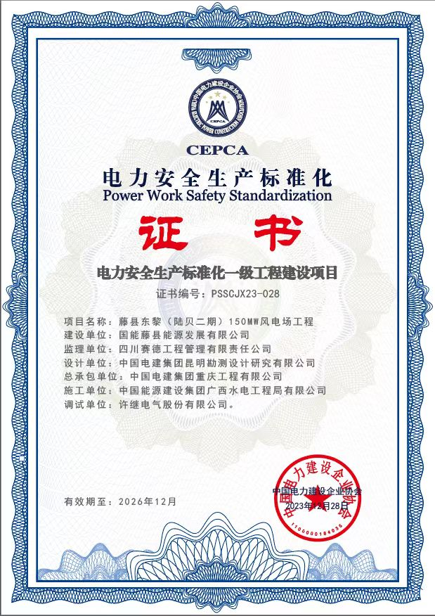 2023年,合计完成170个工程项目建设、调试,其中110kV及以上整站设备集成建设项目86个,35kV整站设备集成项目20个。完成广西国能藤县四座升压站设备集成项目建设,实现许继预装式变电站在藤县能源互联通道中全覆盖;其中参建的藤县东黎(陆贝二期)150MW风电场工程荣获“电力安全生产标准化一级工程建设项目”奖,代表着该项目在安全生产标准化建设方面达到行业最高标准,标志着公司安全生产管理精细化提升迈上新台阶,也是市场和客户对我们不懈努力的充分肯定。