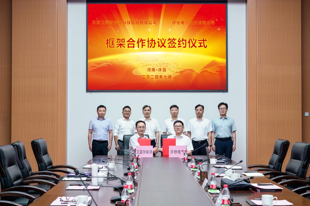 7月8日,许继电气与卫蓝新能源签署战略合作协议,双方将充分发挥各自在新能源领域的专业优势,共同探索新能源电站资源的开发、建设与运营,以及固态电池等关键技术的创新应用。