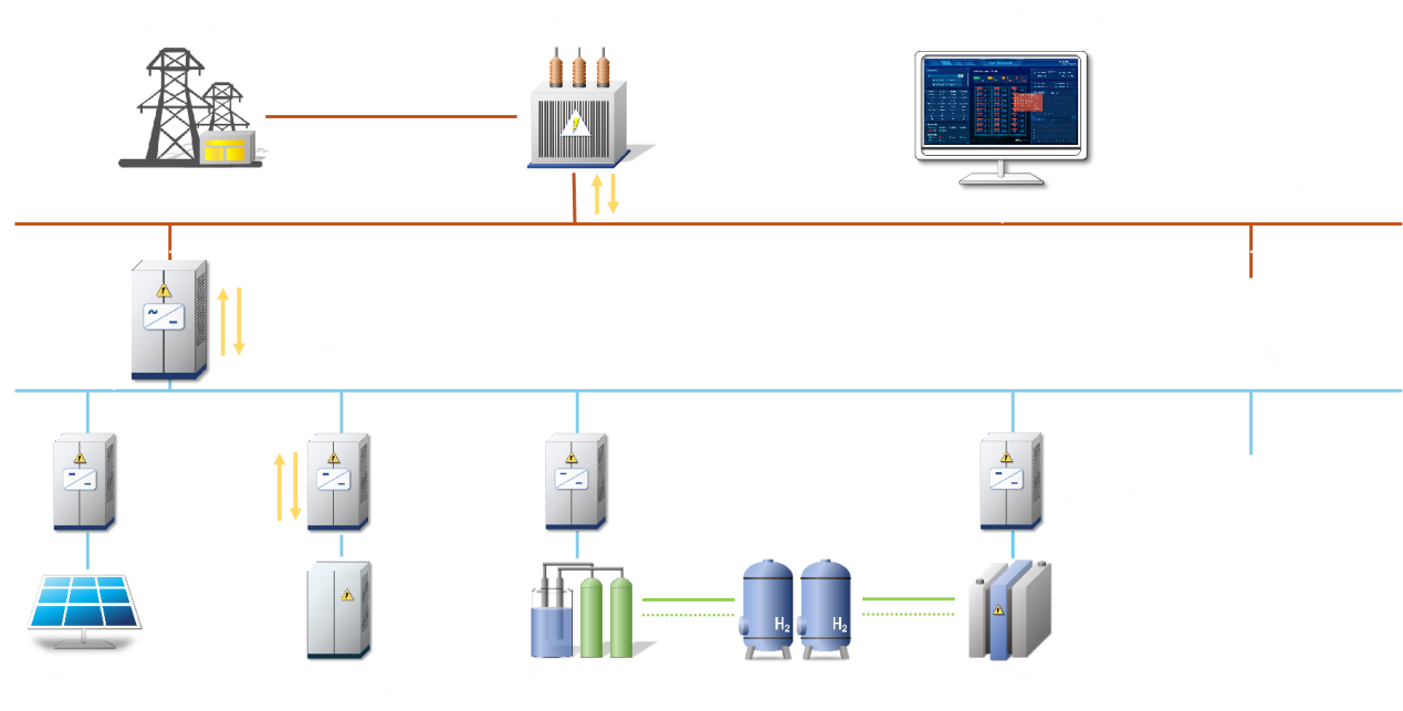 平高预装式氢电互动系统具有定制化设计、工厂化装配特点,可以快速接入现有及新建微电网,解决涉氢场景组网复杂、集成程度低、安全管控困难等问题,结合主动控制、前后端一体化协同运行的能量管控策略,提升系统运行经济性、稳定性与安全性。同时其外置式储氢结构满足储氢量柔性扩展,具备长时/大容量储能能力,从而适应目前涉氢系统建设规模快速扩大及氢能作为二次能源和终端能源低成本应用的要求。